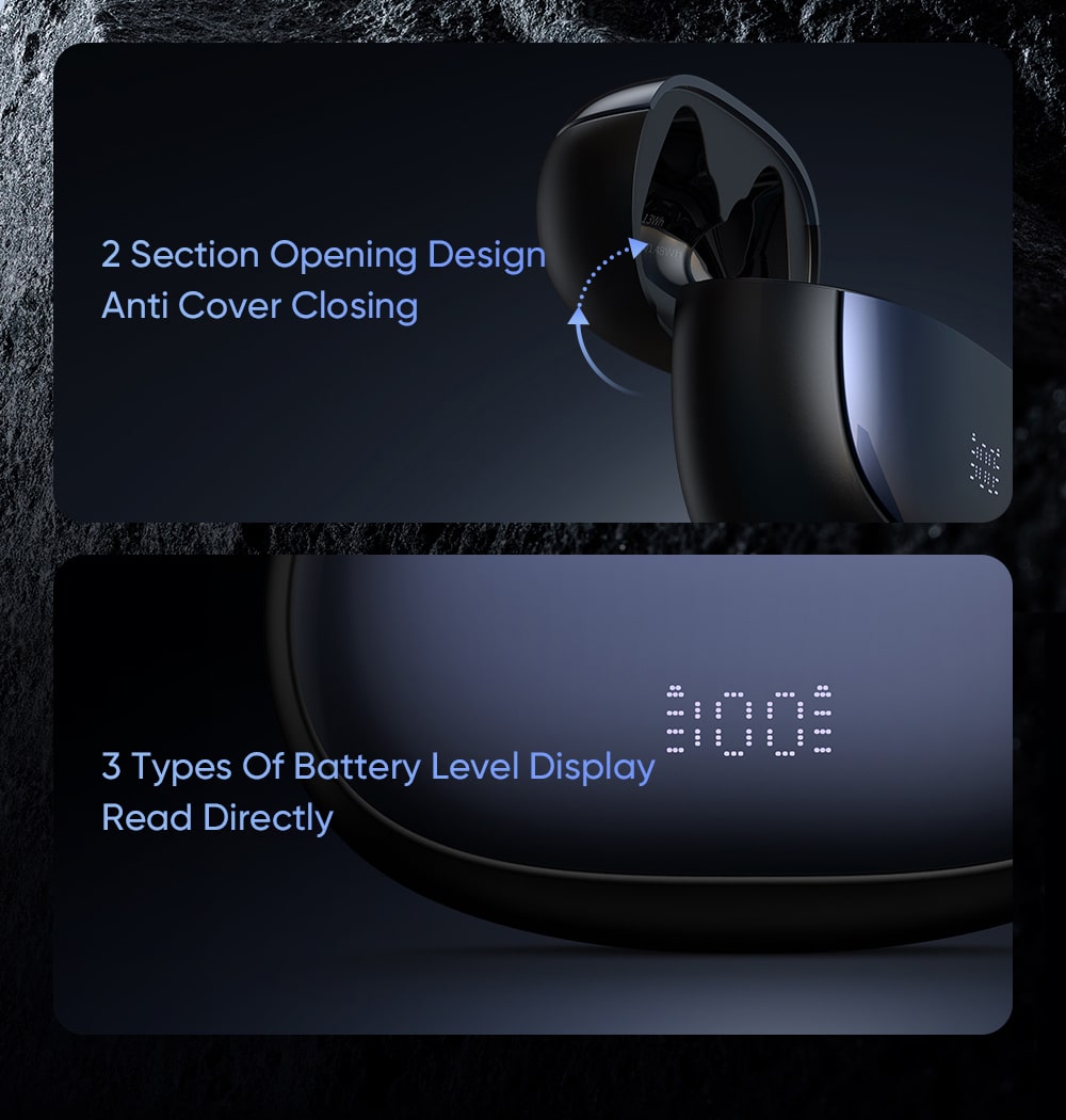✨ THIẾT KẾ THÔNG MINH & MÀN HÌNH LED: Hộp sạc có thiết kế mở 2 phần độc đáo, tạo nên một phong cách riêng biệt. Đặc biệt, màn hình LED kỹ thuật số tích hợp sẽ hiển thị chính xác phần trăm pin còn lại của hộp sạc, giúp bạn luôn chủ động trong việc nạp lại năng lượng.