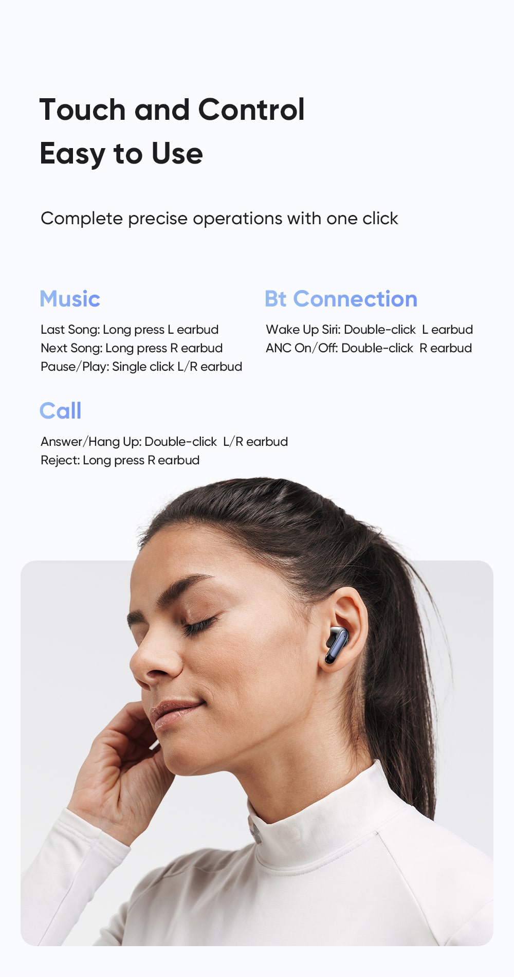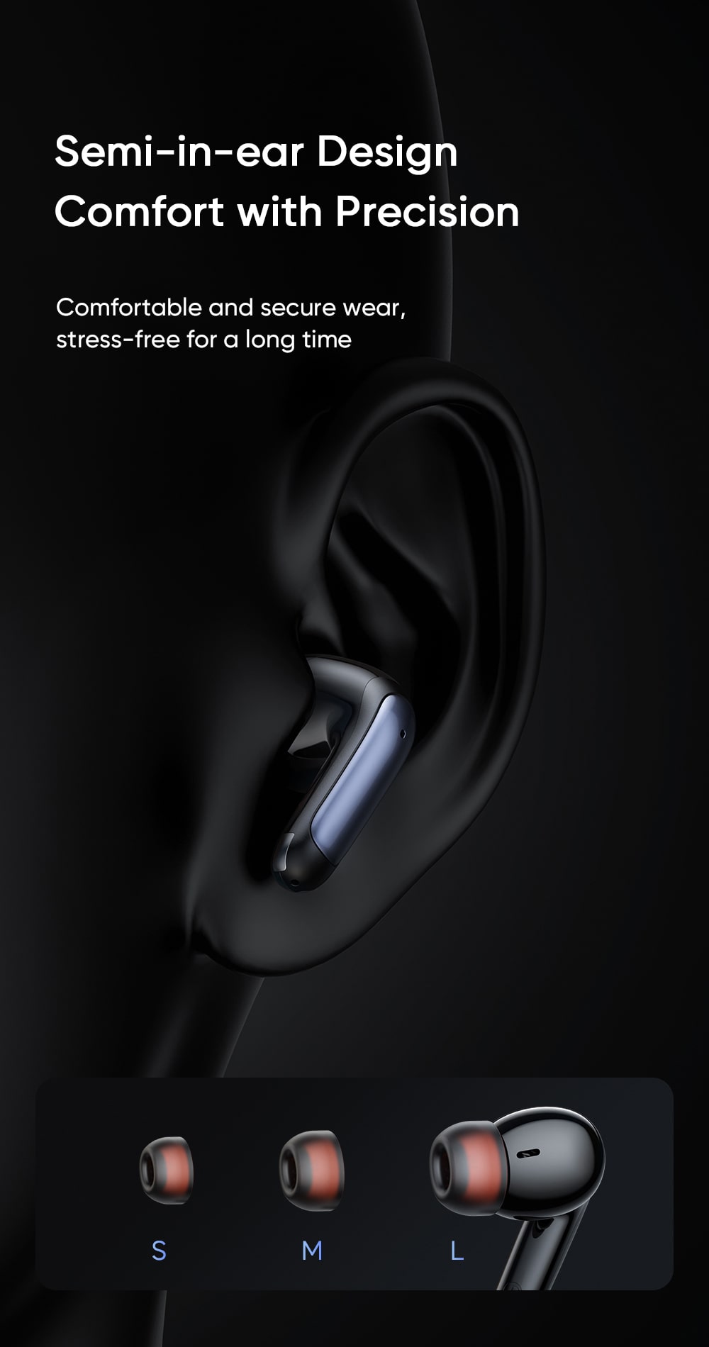 ○ Thiết kế: Semi in-ear, công thái học, đeo thoải mái.