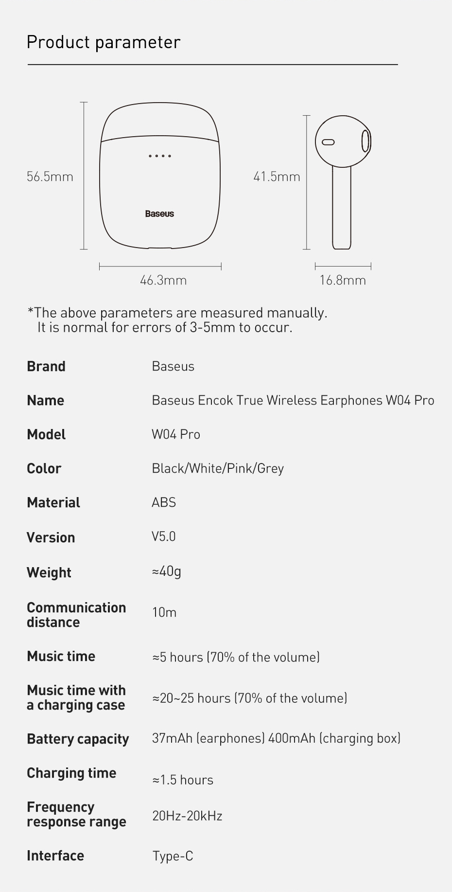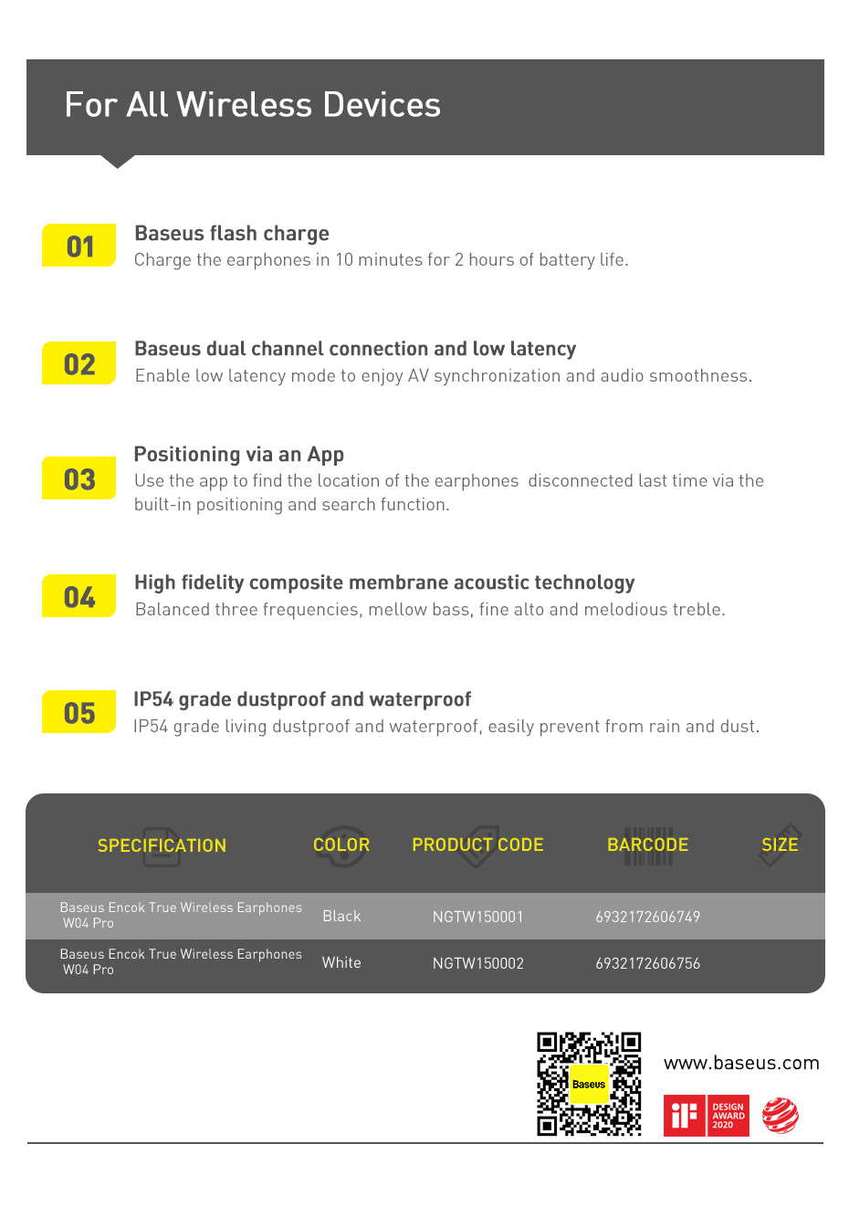 | Tên | Baseus Encok True Wireless Earphones W04 Pro |