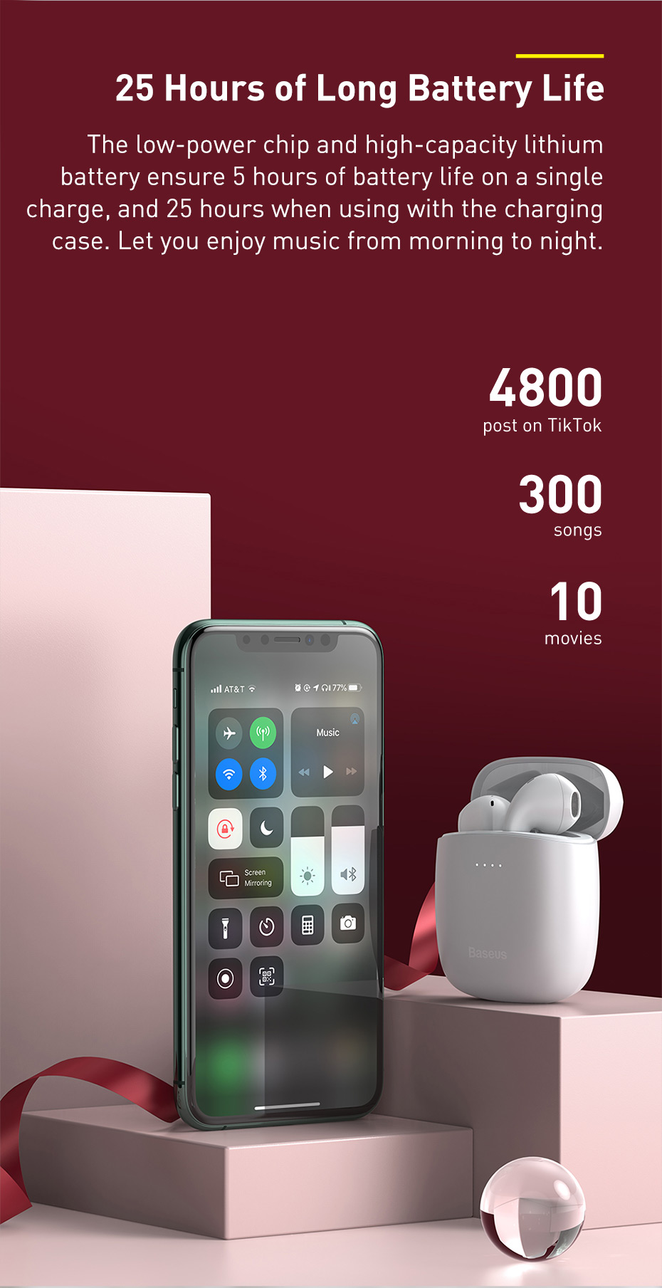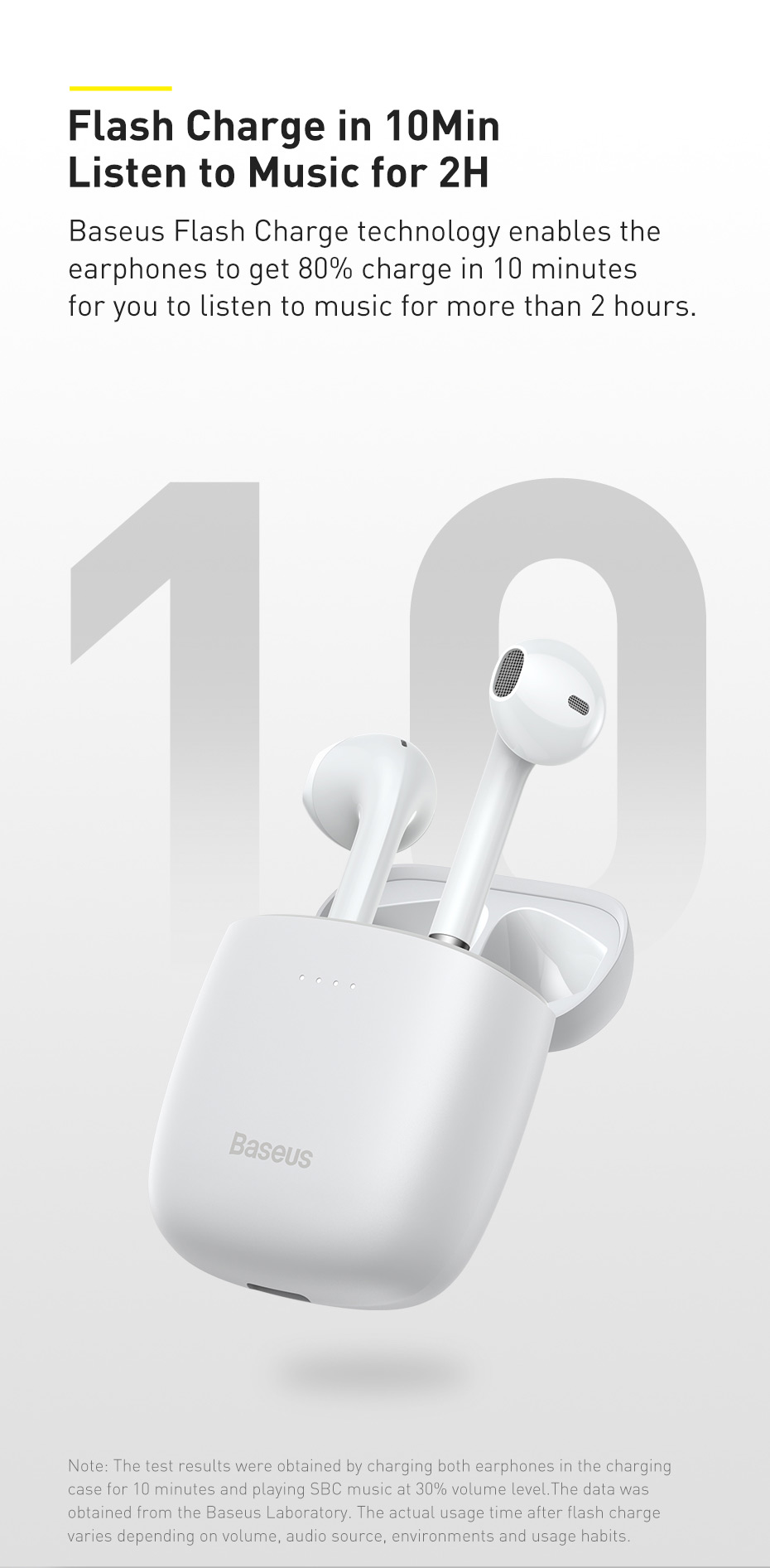 Baseus Encok W04 có thời gian nghe nhạc khoảng 5 giờ, chờ lên đến 350 giờ, Sản phẩm có thể đáp ứng tốt nhu cầu đàm thoại và cả giải trí, thưởng thức âm nhạc chất lượng cao.