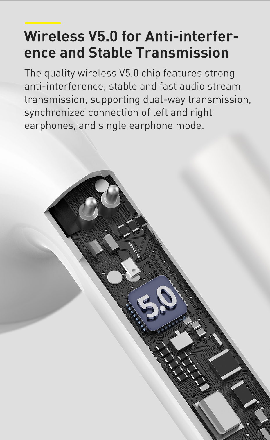 Tai nghe Baseus W04 được trang bị bộ giải mã và xử lý âm thanh thế hệ mới nhất, cho chất âm ấn tượng hơn hẳn các phiên bản khác. Âm bass chắc khoẻ , âm trầm êm ái cân bằng tốt hơn cho khả năng truyền tải và tái tạo âm thanh khá sống động và chân thực.