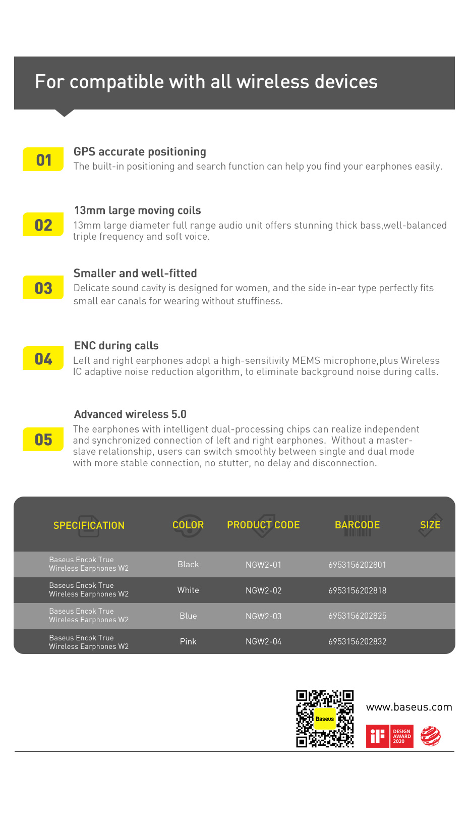 | Tên | Baseus Encok True Wireless Earphones W2 |