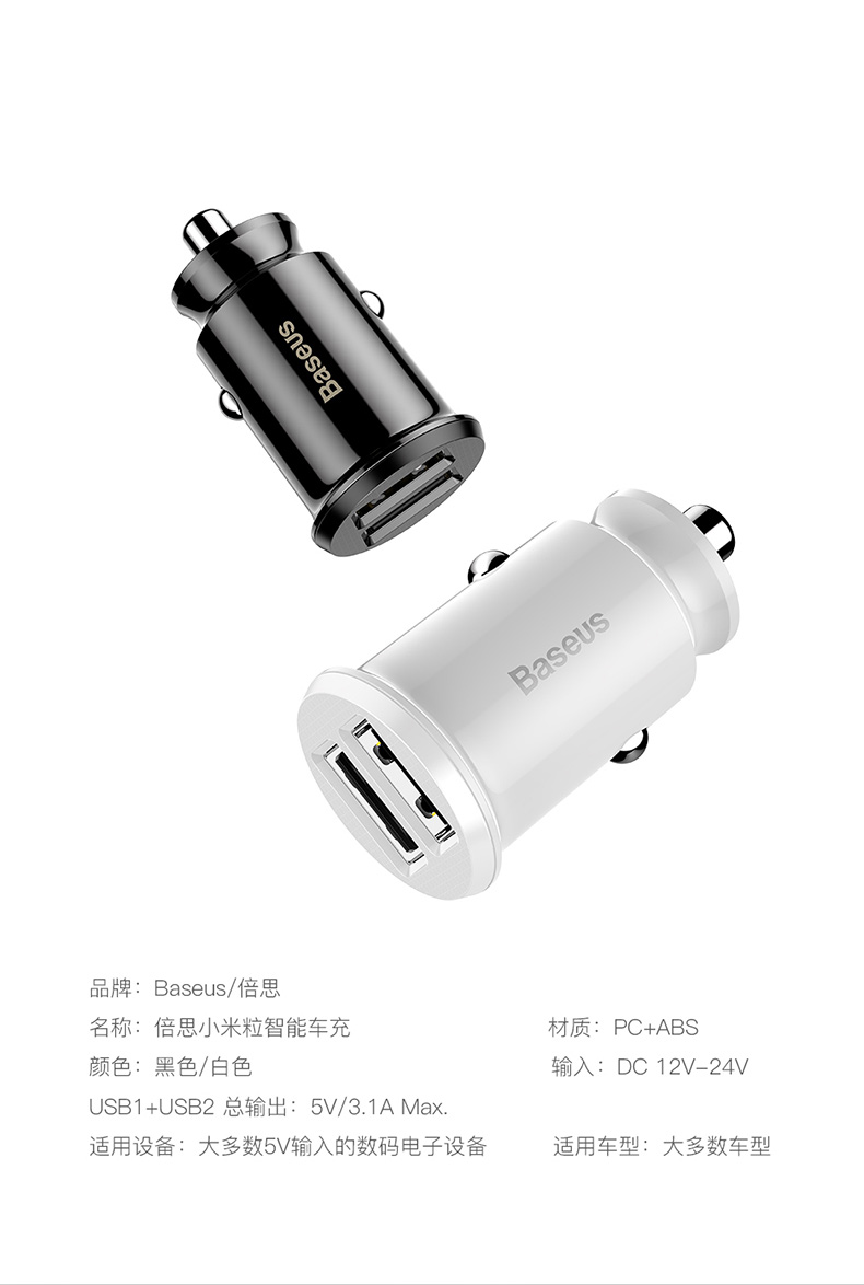 | Tên | Tẩu Sạc Ô Tô Baseus Grain Car Charger (Dual USB 5V 3.1A) |