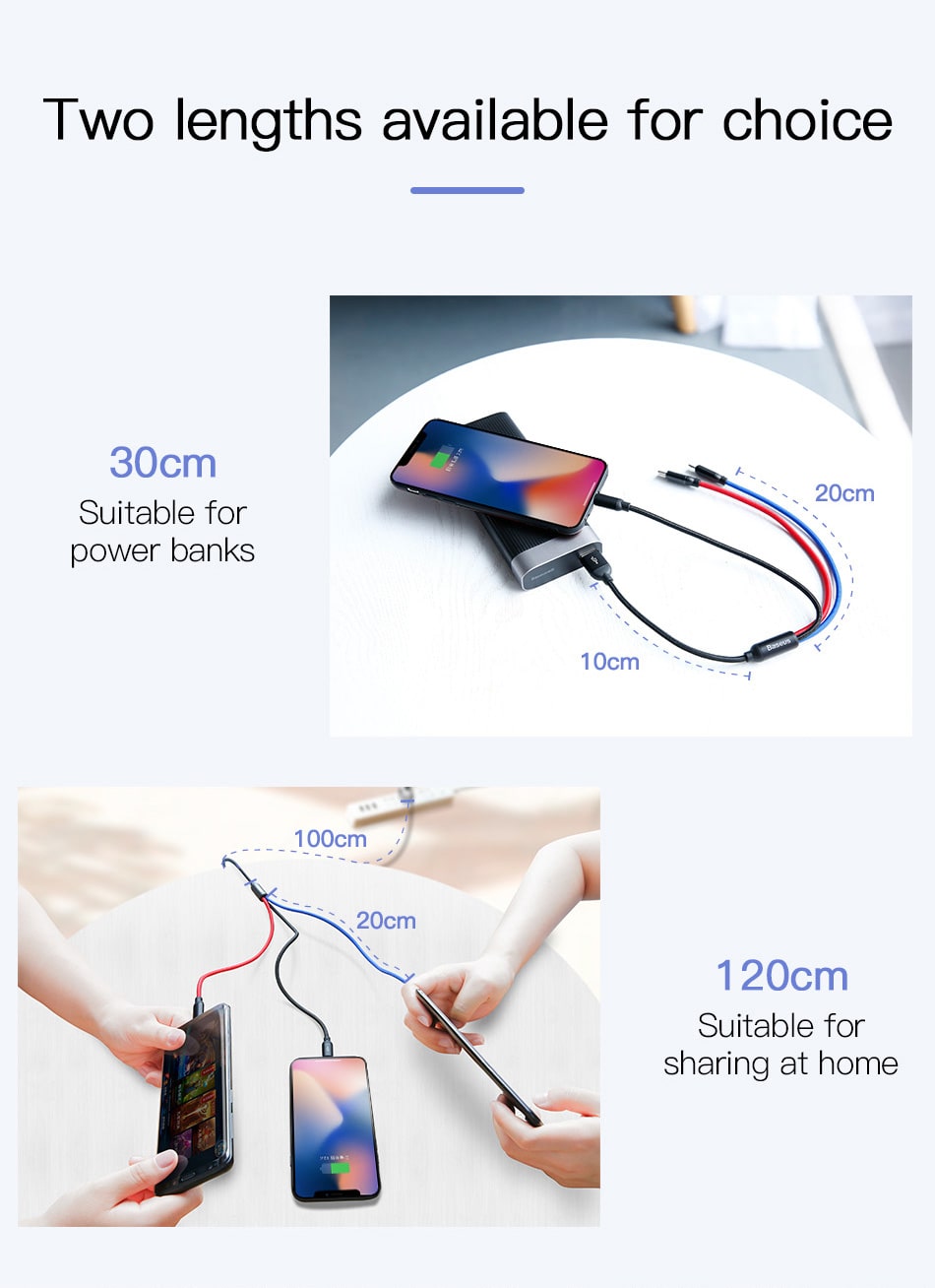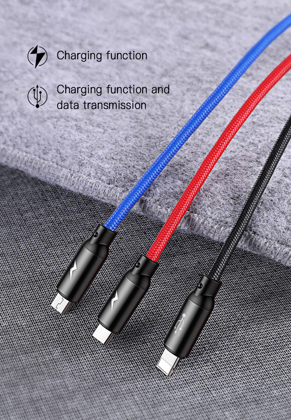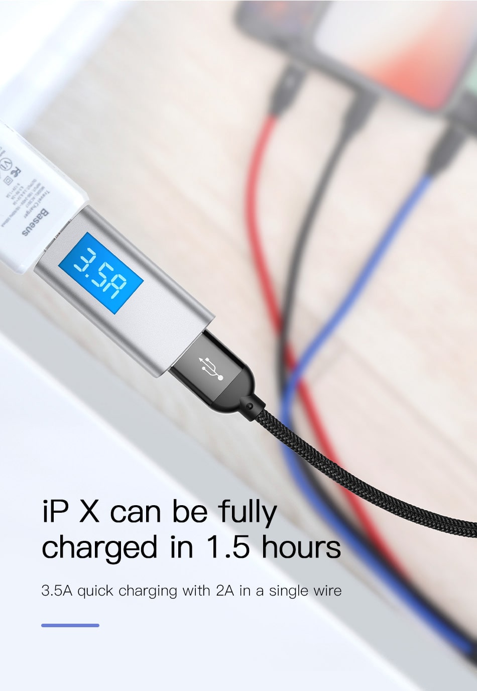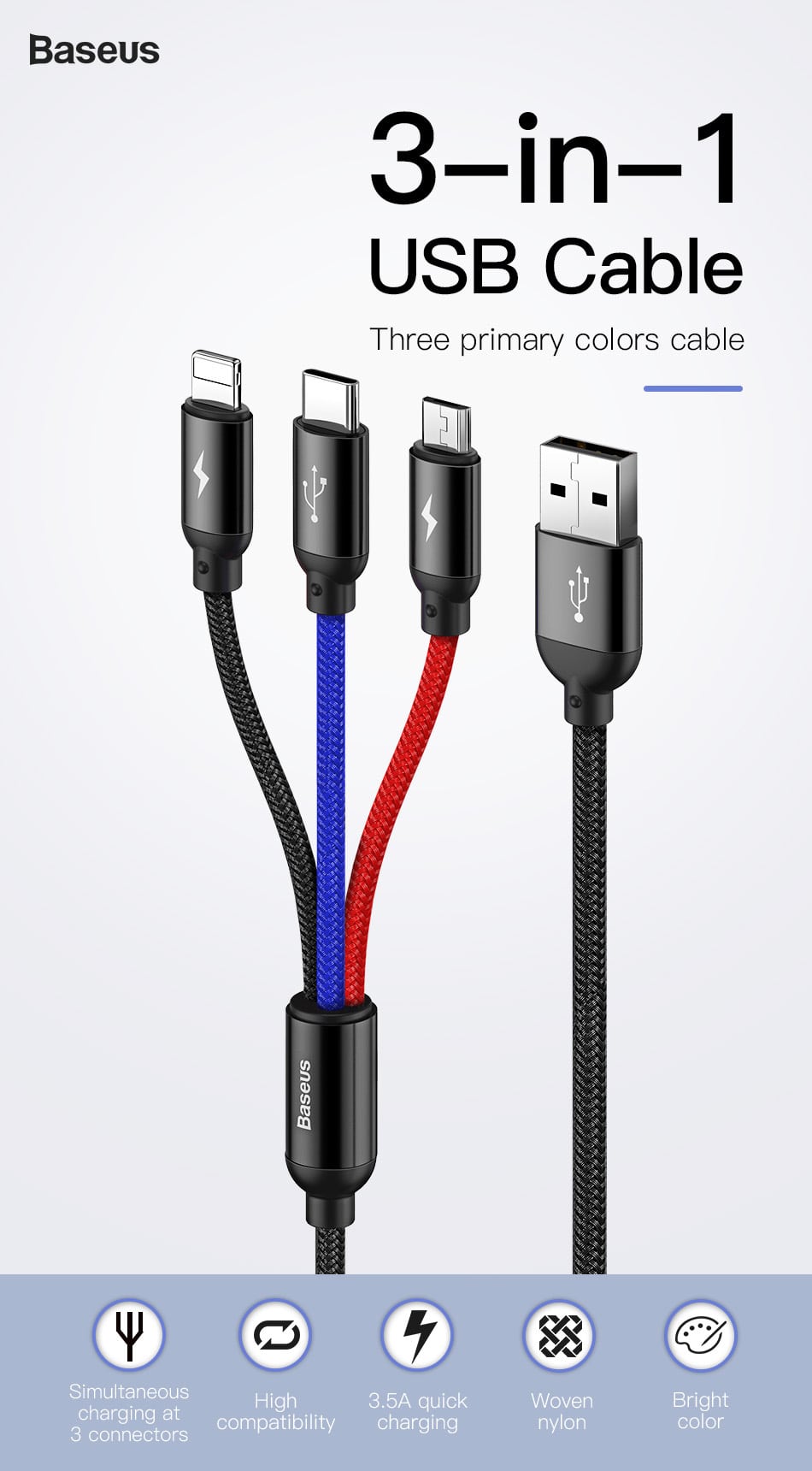 | Tên | Cáp Sạc Đa Năng Baseus Three Primary Colors 3-in-1 Cable USB For M+L+T 3.5A |