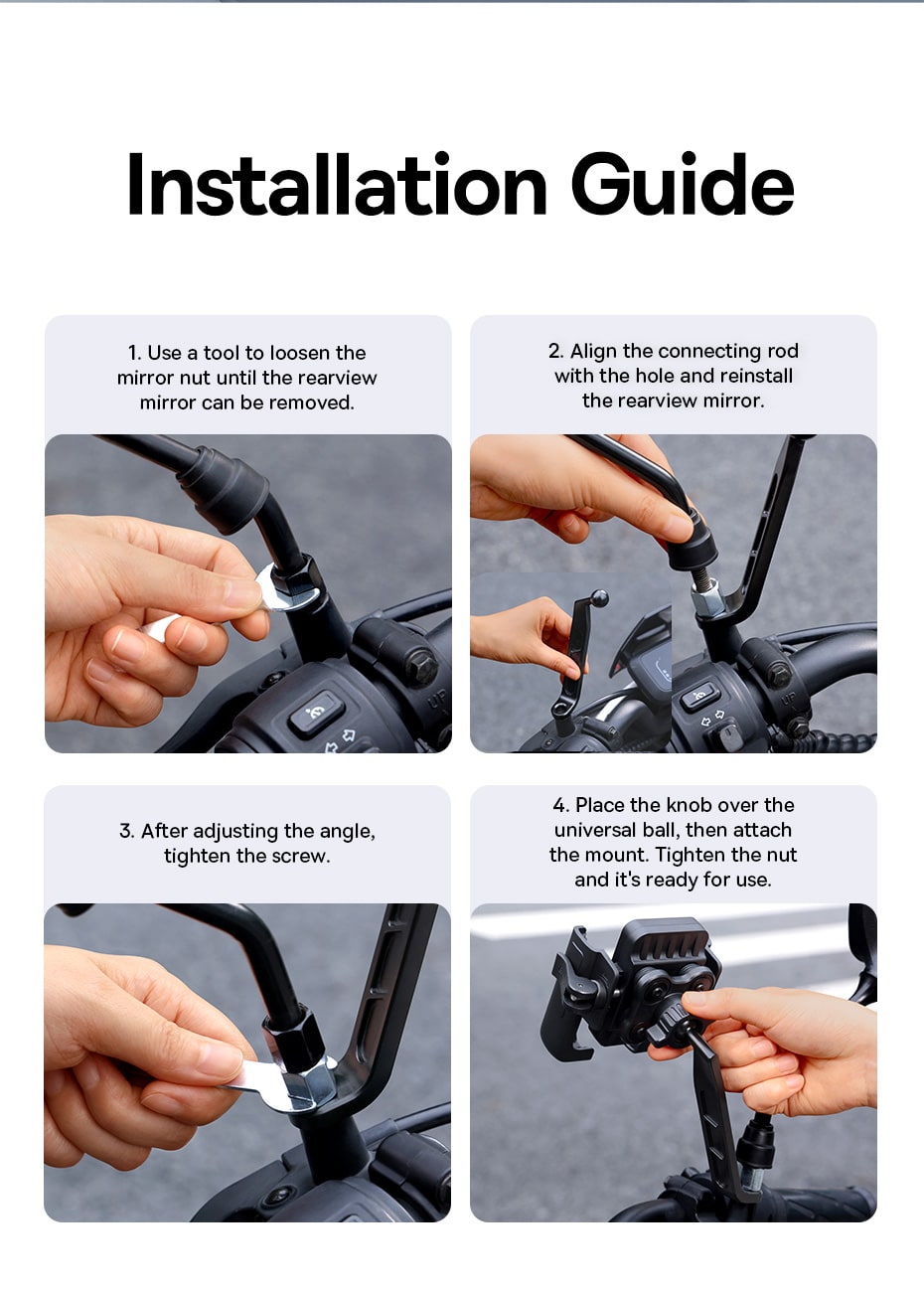 | Tên | Đế Giữ Điện Thoại Xe Máy Baseus GoTrip Series Bike Phone Mount Rearview Mirror |
