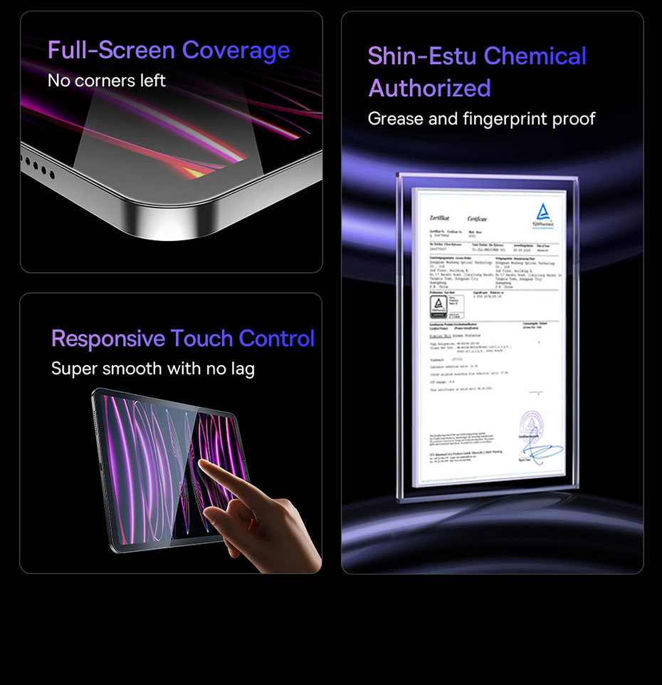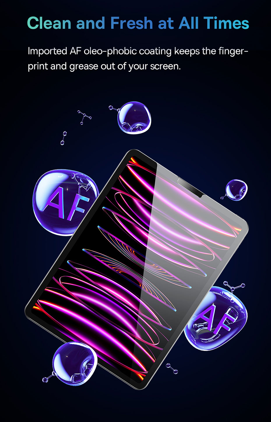 👆 Chống Vân Tay & Cảm Ứng Mượt Mà: Lớp phủ AF oleophobic cao cấp giúp chống bám dấu vân tay và dầu mỡ, giữ cho màn hình luôn sạch sẽ. Độ mỏng tối ưu đảm bảo mọi thao tác vuốt chạm và dùng bút đều mượt mà, không độ trễ.