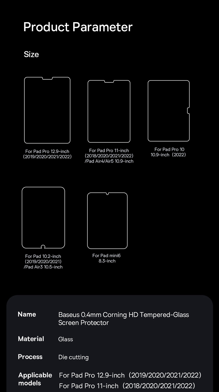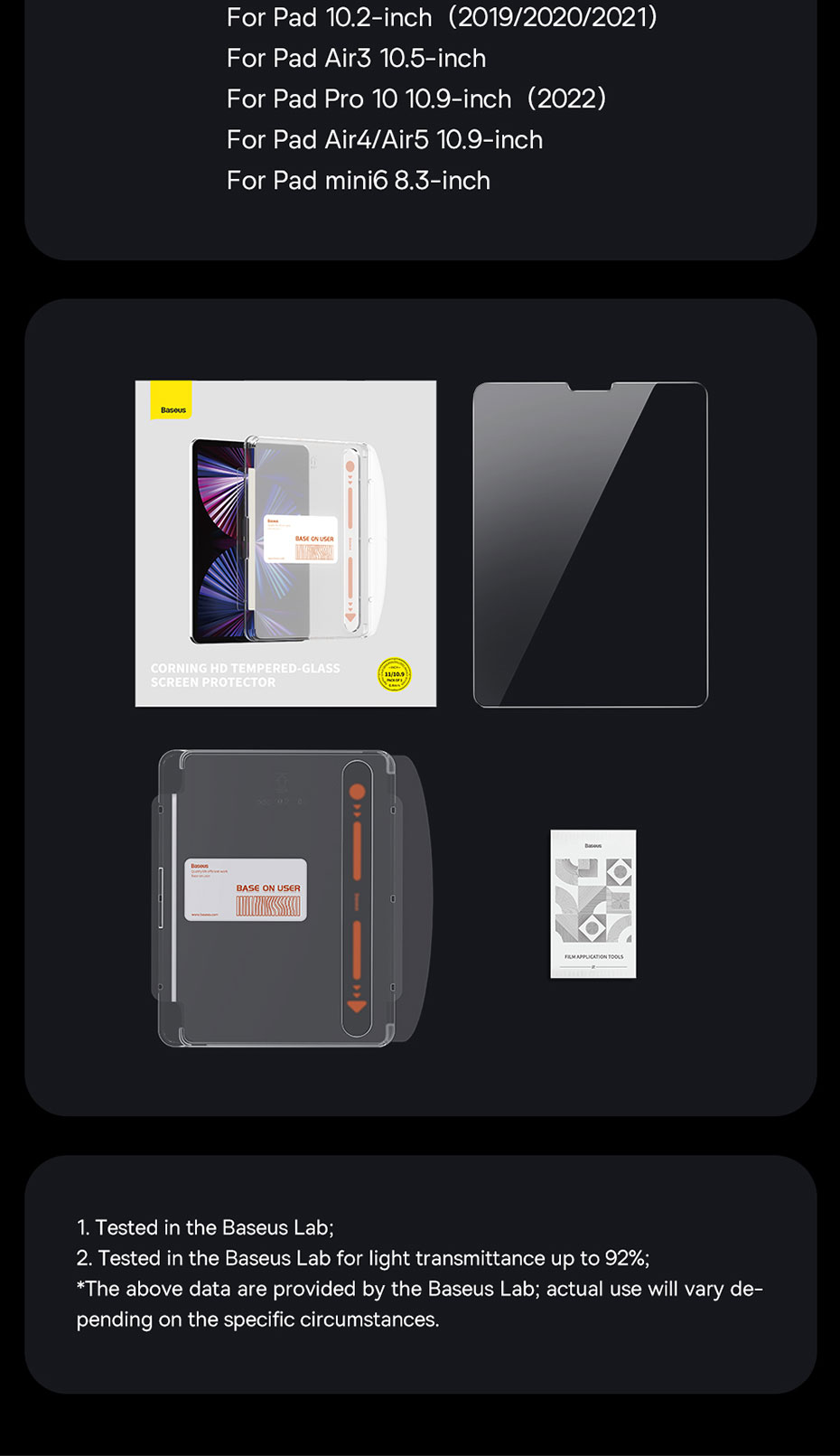 | Tên | Kính Cường Lực Cho Pad Baseus 0.4mm Corning HD Tempered-Glass Screen Protector for Pad |