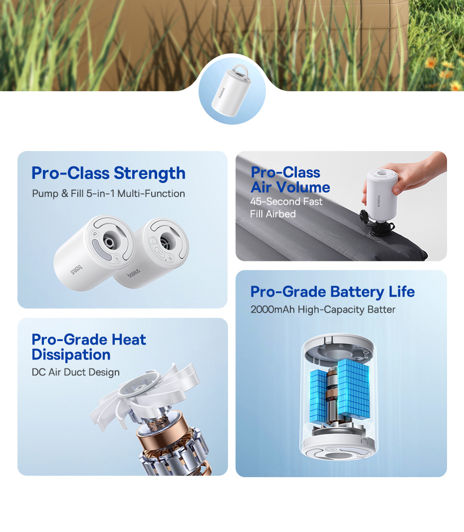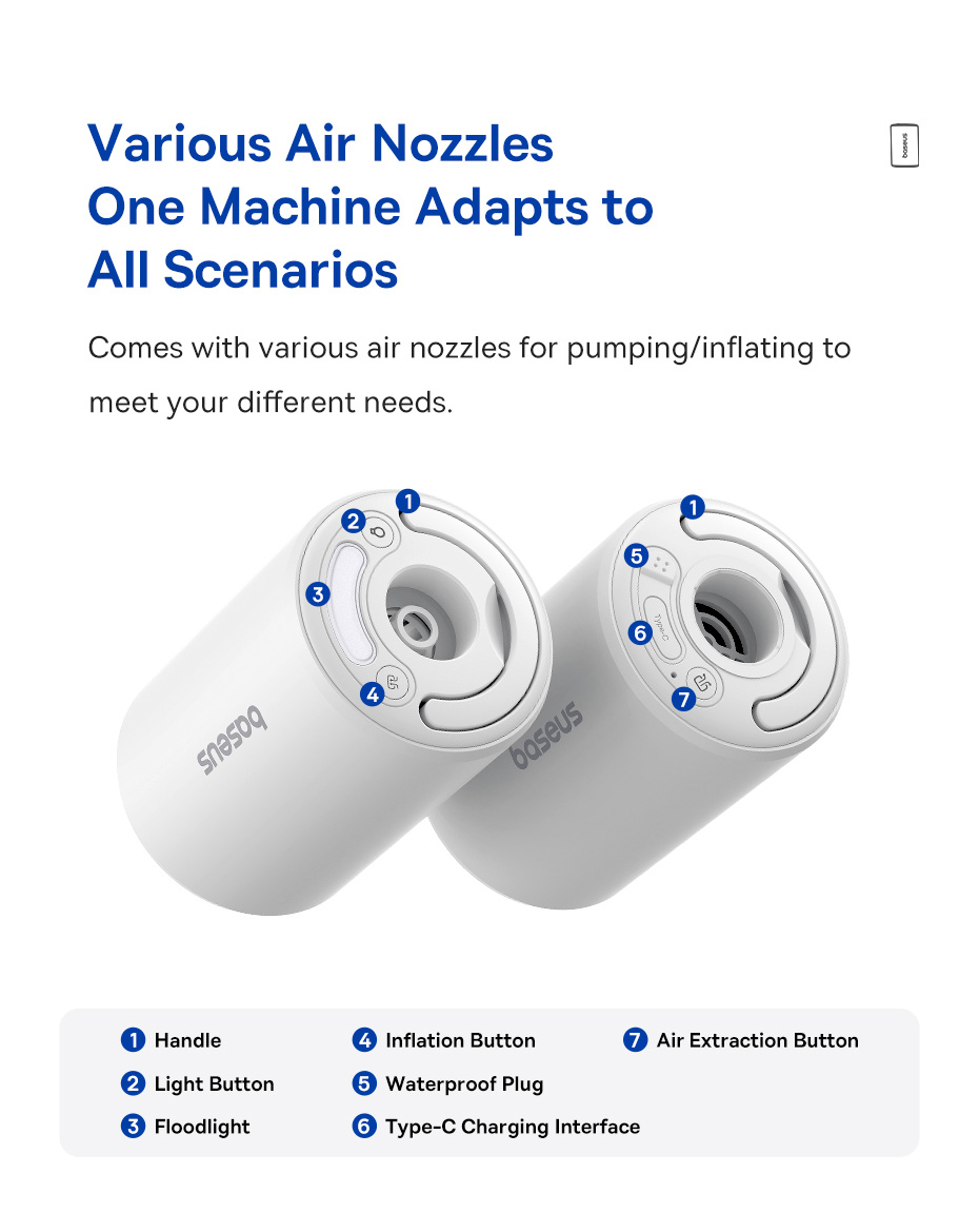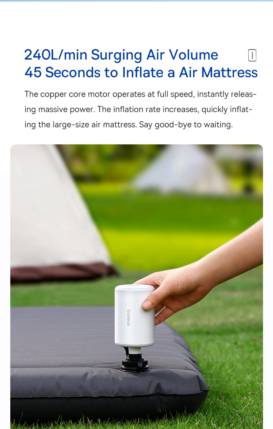 Bạn mệt mỏi với việc phải thổi phồng phao bơi hay nệm hơi một cách thủ công? Bạn muốn tiết kiệm không gian vali quần áo? Máy bơm hơi Baseus PocketGo Pro là giải pháp "tất cả trong một" siêu nhỏ gọn, giúp bạn bơm hơi, hút chân không và thậm chí là chiếu sáng, là người bạn đồng hành không thể thiếu cho mọi chuyến du lịch, dã ngoại.