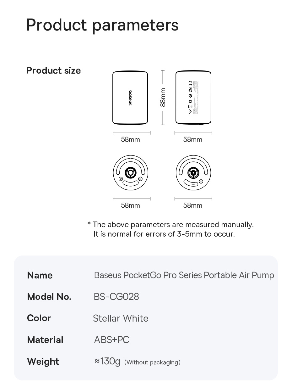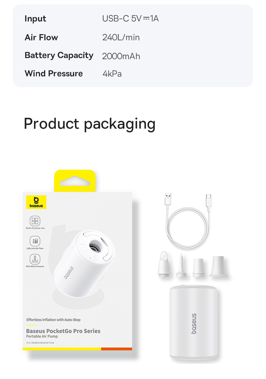 | Tên | Máy Bơm Hơi Nhỏ Gọn Baseus PocketGo Pro Series Portable Air Pump |