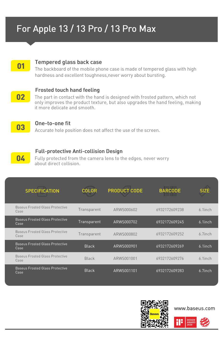 | Tên | Baseus Frosted Glass Protective Case dùng cho iPhone 13 Series |
